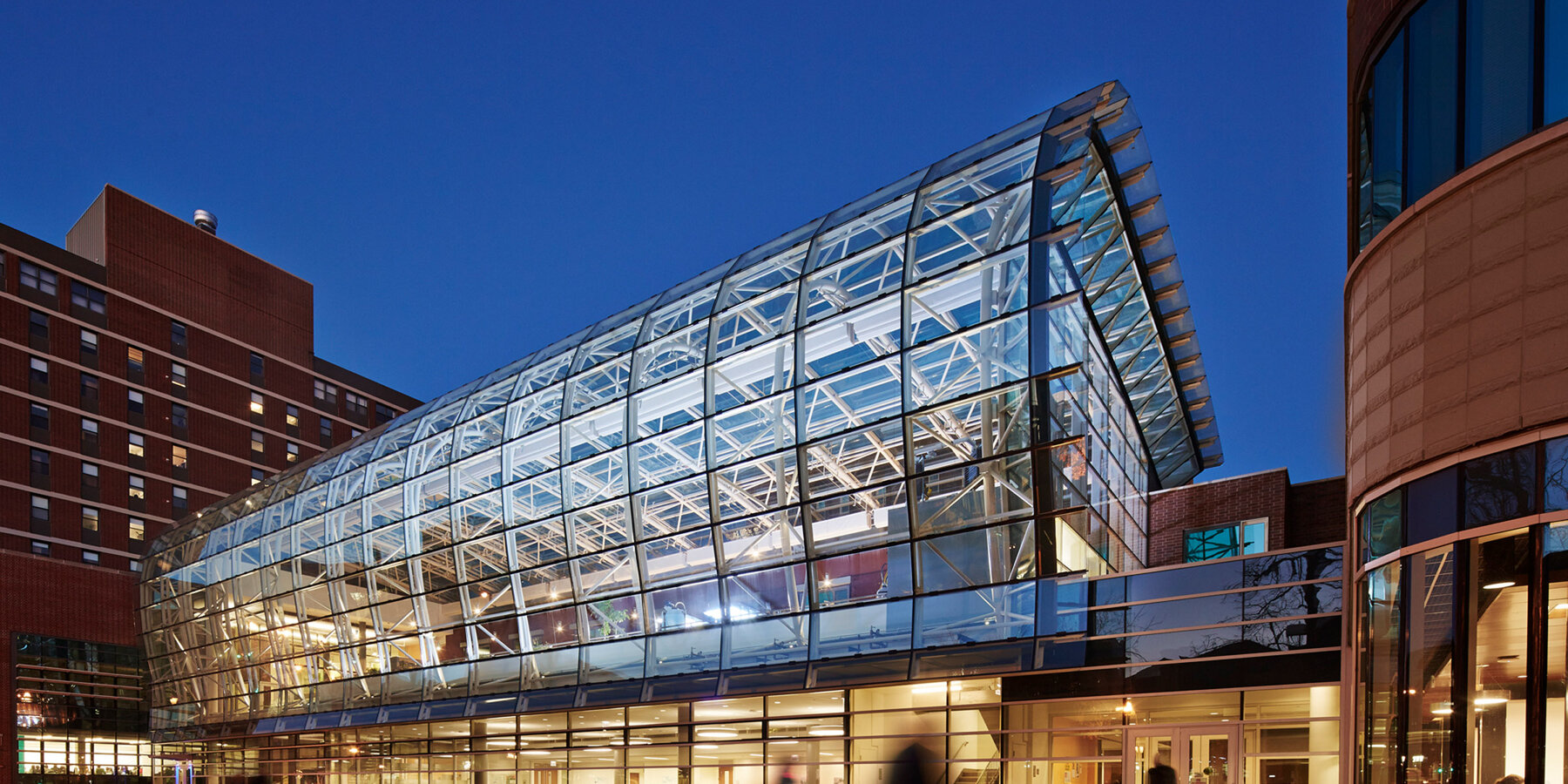 ライト ホールは、生態学、化学、生物学、社会学のオフィスとともに教員と大学院助手の住居を提供する学術的要素を支えています。学術棟は、1 年生と 2 年生のための 6 階建て、ベッド数 357 の学生寮であるサンフランシスコ ホールに接続しています。 13,500 平方フィートのウィンター ガーデンが 2 つの建物を結び、ダイニング エリア、カフェ、レクリエーション スペース、指導に使用される受動的温室を備えた中心的なコミュニティ スペースとして機能します。